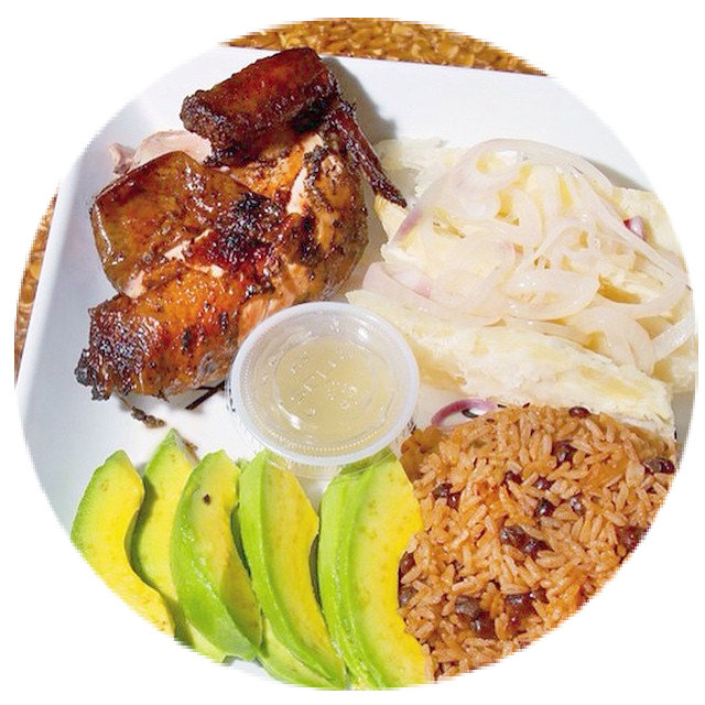 Rice And Beans Or Green Or Yellow Plantains Or French Fries Or Salad